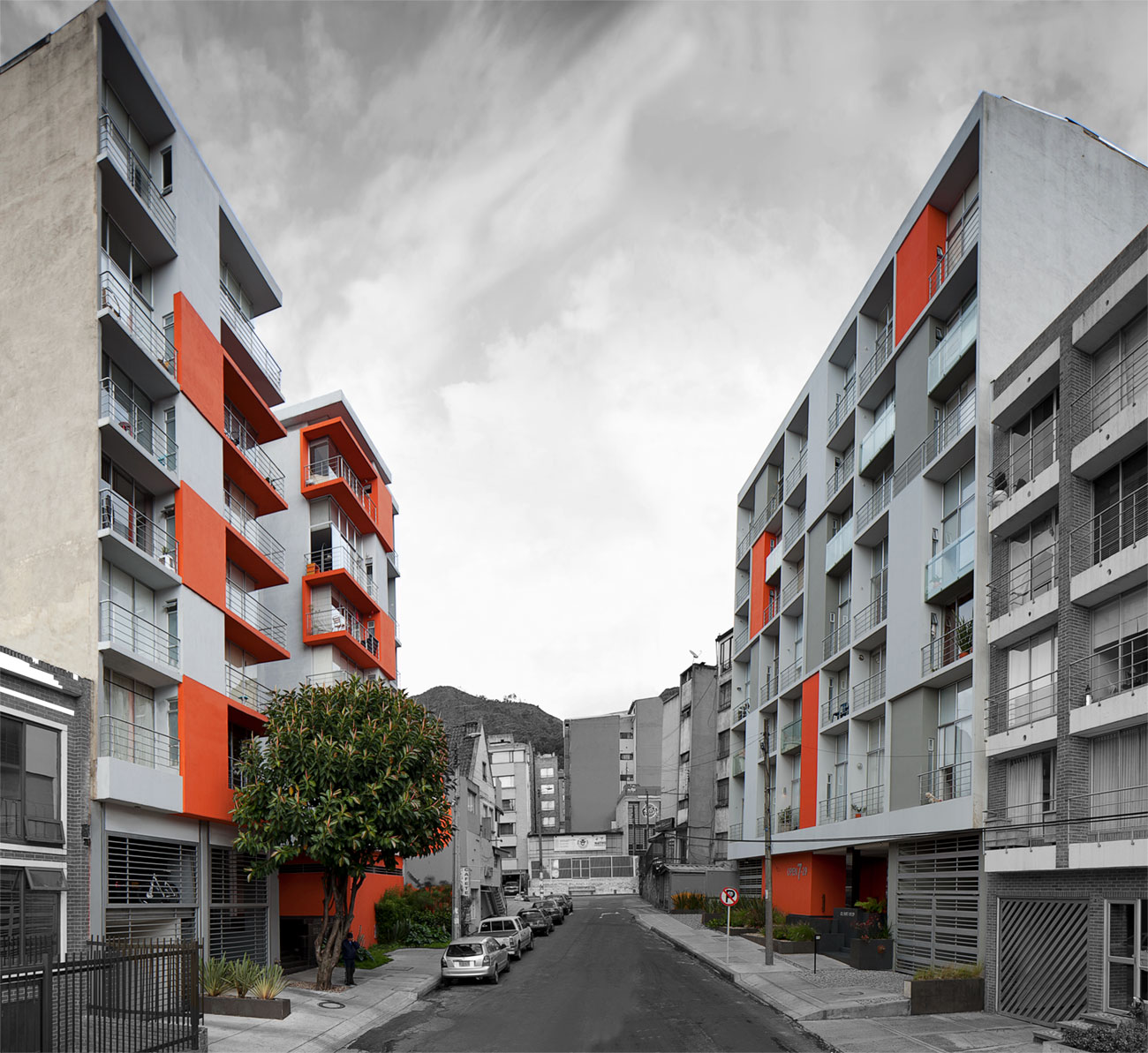Siguiendo con la intención de impulsar el sector, en el 2007 iniciamos este proyecto de 66 apartaestudios y 4400 mts construidos distribuidos en dos torres pero visualmente responden como un solo edificio.